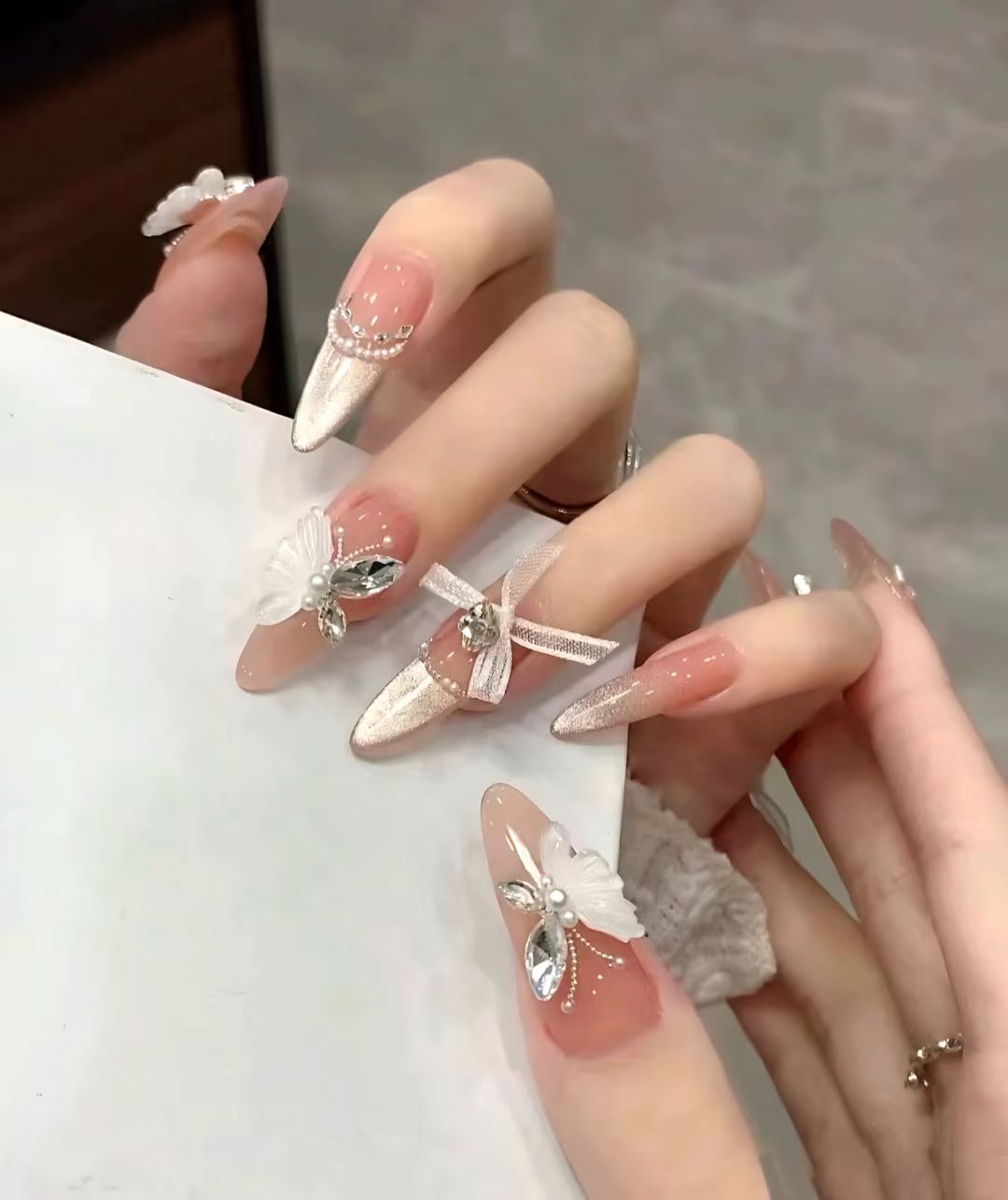 想要get温柔的氛围就来一点小装饰,叠加碎钻胶,就一把子温柔住了。