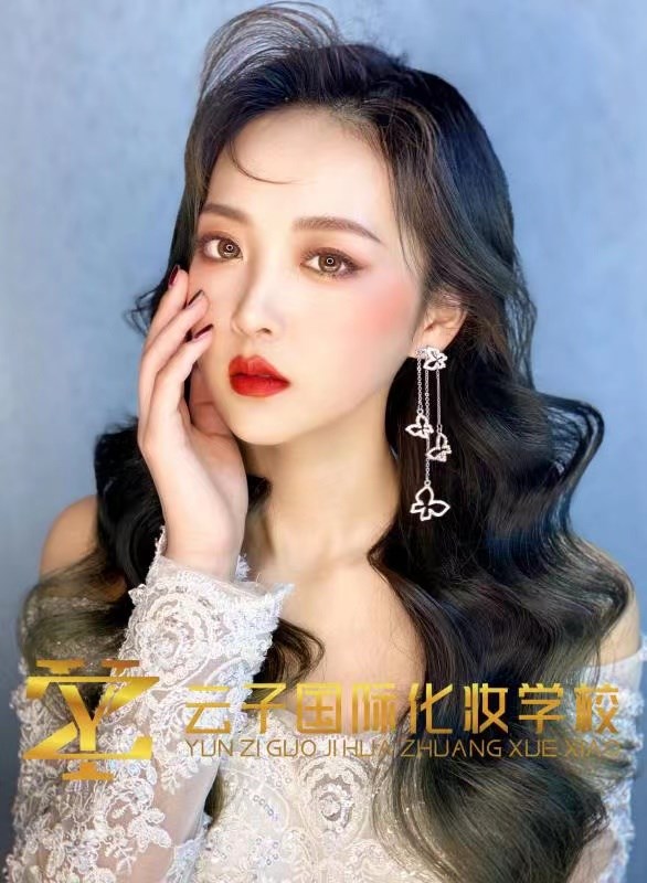 2:用粉刷蘸取适量颜色的粉饼,从颧骨外侧向下巴处轻扫。